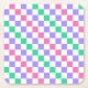 A vibrant checkerboard pattern featuring alternating pastel purple, pink, and green squares against a white background, creating a playful, colorful effect.
