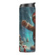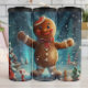 Celebrate the season with a whimsical gingerbread man surrounded by frosting-covered houses and snowy trees. Red candy buttons and a striped bow tie give him cheerful charm. Falling ornaments complete this joyful holiday scene,