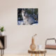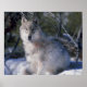 Läckande vilda varger av en grått- djupt i en snö-lastad skog. Bravt färg, vackra detaljer. Utmärkt utskrift på poster, ramutskrifter, hälsning och anteckningskort, frimärke och gåvor av mugg, magneter med mera.