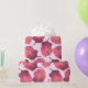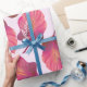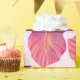 En botanisk illustration mönster av löv från tropicanna-kanna-anläggningen. De är färgader i djupa rosa- och gulter, och de är placerade i en mycket ljus rosa bakgrund.