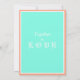 Kärlek är skrivet i vit text under det faux tittar lagrar i kärlek brev. Färsk modern geometrisk vår eller sommartid bröllop. Söt cantaloupe med turkosa blå. Anpassa Namn i Bride och Groom i blått citattecken och detaljer i vit text inuti det vita silver-geometriska ram. Obs! Klicka på Anpassa om du vill öka/minska teckenstorleken efter behov. Sommarfrukten inspirerade till smaken honungsdagg och persikoaccent färg. Baksidan har texten, tillsammans i Kärlek i vitt skript mot blå bakgrund. Originaldesign © TamiraZDesigns.