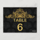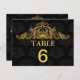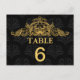 Vintagens elegans. Det svarta bordsnumret har ett faux ornate guld-filigree-format överst gräns på ett svart på svart dammmönster. Enkelt anpassad.