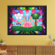 En digital nedfläckad-glass i Art Deco stil som var populär på 1900-talet. Det allmänt använda solsprängningsmotivet är centralt och stigning bakom ett grönt som balanseras av träd på ena sidan och moln och blommor på den andra. Geometriska former används för att framhäva scenens symmetri, med både träd och moln som består av överlappande cirklar. Olika briljanta färgader fraactalerar ge "glaset" struktur och intresserar sig. Scenen är inramad i svart overksamhet och diamantformade block som är frodade med mörk men levande fraktal mönster.
