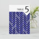 Dessa moderna platskort har ett utkragande chevronmönster i marinblått, kungblått och kobolt. Matchande produkter finns tillgängliga. Levereras i 9 fantastiska färger: gul, fuchsia, mint, kaspisk blå, peonrosa, marinblå, svart, persika och rodnad. Klicka på knappen Anpassa för att anpassa med din egen text. FÖR ATT SE HELE KOLLEKTIONEN, BESÖK MIN HEMSIDA: glamprettyweddings.com. För frågor eller anpassade förfrågningar, maila: cheryl@glamprettyweddings.com/contact. "Cantilevered Chevron" originaldesign av Cheryl Daniels © 2014.