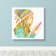 Stretch Canvas från en ung flicka som bar en boho-hatt och lyssnar på musik.