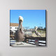 Pelikaner solar på piren. Redondo Beach, Calif. strandscen, sand och handflatan träd i bakgrunden. Pelikaner som predikar, bögar som pekas ut framför tuggar.