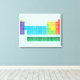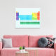 Kanvastryck med periodiskt återkommande bord i inslag, där varje inslag-grupp markeras med regnbåge i färg.