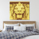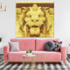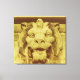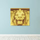 Arkitektonisk detalj på sidan av en offentlig byggnad. Detta lejonhuvud är gyllene med skuggor och väderfläckar som framhäver ögonens, munnen och manens detaljer.