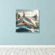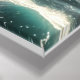 Denna canvastryck avbildar en silver UFO som susar över en stor vattenmassa.