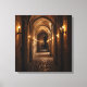Detta canvastryck visar en slottkorridor upplyst av fladdrande ljus.