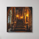 Detta canvastryck visar en slotts trappa upplyst av fladdrande ljus.