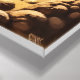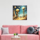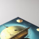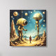 Detta science fiction-tryck visar en tidsresenär som möter två gigantiska robotar som svävar över landskapet.