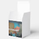Ett vackert landskap med ett unikt struktur som visar ett kanjonlandskap med en flod och stjärnande himlar och skuggor av brunt, blått och magenta.