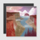 Denna fantastiska landskapskonstruktion skildrar en kanjon som leder in i havet och solnedgången med olika nyanser av rött, krimson, beige, orange och tan.