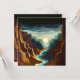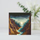 Ett vackert landskap av en kanyon med en flod i fet nyans av brunt, solblått, cyan, guld och beige.