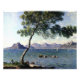 "Vid Cap d'Antibes" fångar Fransken Rivieras serene och solbelysta skönhet. Detta arbete är ett uttryck för fascination med ljusets och färg inverkan på landskapet. Målningen skildrar en stillastående kustscen med skuggande blå vatten, guldsand och avlägsna Alpernor. Förgrundsinformationen är pricken över i en sjudande Medelhavsvegetation, som gräs och träd, som är försedd med ett känsligt borsverk för att sprida rörelse och ljus. Den allmänna stämningen är fredlig och idyllisk, och den präglas av värme och avsky från södra Fransken kusten. Denna målning är ett utmärkt exempel på en behärskning när det gäller att fånga de övergående naturkvaliteterna, som är centrala för Impressionisterna stil.