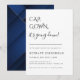 CAP, GOWN, it's going down! Contemporary graduation party invitation. Modern typography design on ivory and midnight blue color backgrounds with faux gold geometric pattern backing.