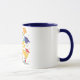 En roligt- och festive mugg-design med "CAP TOSS CREW" i fet gult och blå text i svart bakgrund. Färgfulla studentmössor flyger över fusk på student och konetti, och fångar upphetsningen från studenten dag.