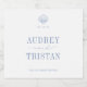 CAPE COD Coastal Blue, bröllop drycken flaska. Symboler, ljusblå typografi och säsongsillustration av scallop.