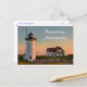 Cape Cod-minnen! Detta roliga vykort visar en vacker solnedgångsscen vid Race Point Lighthouse beläget i Provincetown, Massachusetts. Provincetown är en pittoresk New England-fiskeby som ligger vid den yttersta spetsen av Cape Cod i Barnstable County, Massachusetts. Ibland kallad P-town, är staden känd för sina vackra stränder, hamnar och sanddyner.