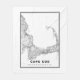 High-Resolution Karta of Cape Cod, Massachusetts, Förenade Stater.