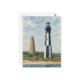 Den här vattenfärgsbilden skildrar både det gamla och nya Cape Henry Lighthouses i Fort Story, Virginia, mot ett lätt blå himmel med kloka vita moln. Bilden har en mjuk, något förändrad färg-palett som är karakteristisk för vattenfärger. Att dominera bildens höger är den längre, nyare Cape Henry Lighthouse. Det är tydligt målat med fet, alternerande vågrät svart och vitt rand. Till lämnad om det nyare fyren, och något bakom det, står den äldre Cape Henry Lighthouse. Den här strukturen är kortare och har ett mer detaljerat utseende. Besök www.frogleveltees.com för mer!