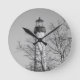 Det här är ett svart och vitt foto av Cape May Lighthouse. Den är känd för lokalbefolkningen som Cape May Light och ligger i södra New jersey i Cape May Point State Park. Fyrskåpet finns på själva spjutspetsen av South Jersey och fungerar som en ledstjärna för inkommande fraktaser. Detta scenfoto togs på vintern och fyren kan ses genom träd grenar i förgrunden. Fyrskåpet är ett landmärke för NJ, en Kap May-turist attraktion och ett vackert biet av arkitektur.