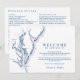 Välkomna era gäster med stil med detta eleganta evenemangskort för bröllomshelgen, med ett tema som består av en karta i marinblå över Jersey Shore i Cape May. Framsidan visar ett varmt välkomstmeddelande medan baksidan visar er detaljerade helgaktiviteter. Perfekt för bröllop på Congress Hall, Cape May Winery, Cape May Lighthouse, Corinthian Yacht Club eller Willow Creek Winery, detta kort håller era gäster informerade och glada inför er fest vid kusten. Illustration av Coastal Map Designs.