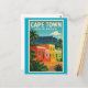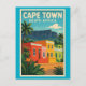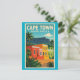 Cape Town, Sydafrika-resaffisch med Table Mountain, Bo-Kaap-hus och tropiska växter.