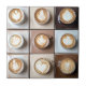 Söt bild av cappuccinokaffekoppar på mindre färgglada brickor. Skapa ett sött tema för kaffelskare i ditt kök med denna präglade keramiska bricka. DETTA ÄR EN UTRYCKT BILD