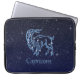 Laptop sleeve med symbolen för Capricorn i mjuk silver-blått, överdragen med konstellationens stjärnor, mot himlar-stjärnans bakgrund, graderad från djup midnattblått till svart