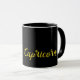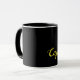 Capricorn-bokstäver i guld blomstrar på svart botten.