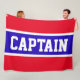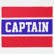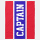 Den här sportlagsdesignen har klassiskt starkt fetstilt stort brev i ett markerat, levande blått rand med vitt streck på en ljusröd bakgrund med "CAPTAIN" skriven fram och mitten. Gör det till din egen: färg och texten i den här designen kan vara personlig.