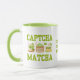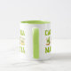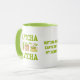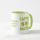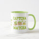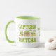 Roligt CAPTCHA DA MATCHA Roligt Latte Drinker Mugg med ANPASSADE TEXT, för drickare av matcha latte tea. I designen visas tre bilder matcha latte-kaffe och löv mellan fetstilt grönt med CAPTCHA DA MATCHA. Texten i mitten är ANPASSADE så att du kan använda din egen formulering eller radera den.