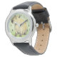 En liten vattenfärgsmålning av Capybara sitta bland blåa blommor i vår.