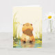 Detta berömvärda hälsningskort illustrerar på ett lysande sätt en kapybara som står fredligt i grunda vatten, ansikte upplyst i ett glatt leende. Den här vita kapybara är omgiven av mjuk, muterad grej och utsätter en serene, lycklig vibe, perfekt för att ge glädje och lugn till alla som tar emot den. Idealiskt för djur älskare och kapybara fläkt, fångar det här kortet ett lekfullt men lugnande ögonblick i naturen. Den minimalistiska utformningen och det milda färg gör den lämplig för ett stort antal tillfälle, från födelsedagar till just-därför-ögonblick, vilket gör att en aning av naturens lugn läggs till i vilket budskap som helst.