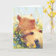 Det här charmerande hälsningskortet har en fridfull kapybara-relaxering i en solbelyst ängsmark omgiven av levande vilda blommor. Kapybarens uttryck innehåll och det mjuka pastellet färg skapar en lugnande och vismisk scen, perfekt för natur älskare och djurentusiaster. Med sin vattenfärg-stil-illustration och milda atmosfär är detta kort idealiskt för alla som uppskattar söt djurkonst och vill en aning värme och lugn. Perfekt för födelsedagar, tack eller bara för att det här kortet ger ett leende med sin beundransvärda skildring av natur och djurliv.