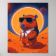 Lustigt modern mur poster med en kapybara på planeten mars som bär kostym och solglasögon med sol i baksidan. Unik hemdekor med utskrivet eller digitalt hämtningsbart alternativ.