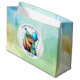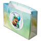 Blue and Green capybara themed boy's Birthday Party personalized gift bag. A watercolor capybara holding a balloon and birthday gift. Cute for kids of any age!