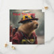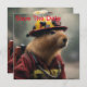 "Capybara till Räddingen: Firefighter Extraordinaire", en heroisk kapybara går i aktion och klad i en ljusröd brandmanshjälm från jacka och gult. Dess mod och hängivenhet visar på dess stolta ansikte. En bild av mod, gemenskap och en enande tvist på vardaghjälten!