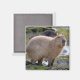 Closeup capybara (Hydrochoerus hydrochaeris) i tass i vatten vid en damms kant och sedd ur en profil