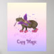 En söt och rolig design med en bedårande capybara-älva som håller en magisk stav i munnen, omgiven av gnistrande stjärnor. Hon bär moderna rosa skor. Denna lekfulla och drömlika illustration är perfekt för flickor som älskar magiska djur och älvor.