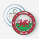 En 3D-bild av den walesiska nationella flagga, som ligger mitten i designen Huvudstaden Cardiff är överst på bilden, och land, Wales, ligger grund i bilden. Mellan de två delar är dekorativa stjärnor och två fleur-de-lis.
