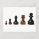 En rad med fem schackpjäser av olika storlek, från minsta till lämnat till största till högerna, som en symbol för affärskarriärtillväxt. Isolerad mot vit bakgrund.