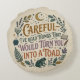 Nestled amongst ferns, oak leaves, and shimmering crystals, a wise toad sits beneath a crescent moon and stars, guarding the secrets of the text below. The quote, "Careful, I've read things that would turn you into a toad," is rendered in a charmingly rustic, old-style typography that feels right at home in a dusty library or a fantasy story. The earthy color palette of forest green, dusty purple, and mustard yellow gives it a cozy, antique feel. If you find your greatest adventures between the covers of a book and possess a slightly mischievous wit, this design captures your spirit perfectly. It’s a sophisticated nod to the power of knowledge, seasoned with a hint of folklore magic.