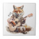 Karikatyr Tecknad Animal Fox A musikaliskt lustigt djur, räv spelar gitarr.