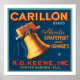Vintage frukt låda-etikett för Carillon brand Florida grapefruit och orangar.