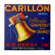 Konst för etiketten för vintagefruktlådan för Carillon brännmärker den Florida grapefrukten och orangar.