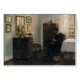 Carl Holsøe - Woman with Fruit Bowl, ca 1900 Holsøe länade i behmed Vilhelm Hammershøi, som utöv ade ett starkt på honom, överväg ande inre örer med gamla möbler och plirer. Hans torra, delikata pensel tolkar med sällsyn t länerisk finhet de blida Harmonerna i lugna tysta rum. Det här hälsningskortet innehåller ingen text.
