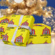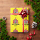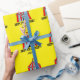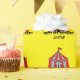 Tält för cirkus för tema för barns födelsedagparty som carnaval slår in papper. Färgrik gul gåvasjal för barn. Tillfoga din egna personlignamn och ålder. Neutral design för gender för pojkar och flickor. Också trevligt för themed baby shower.